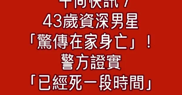 午間快訊/43歲資深男星「驚傳在家身亡」!警方證實「已經死一段時間」