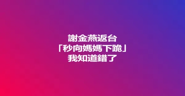 快訊 / 謝金燕返台「秒向媽媽下跪」:我知道錯了