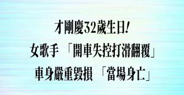 才剛32歲生日!女歌手「開車失控打滑翻覆」 車身嚴重毀損「當場身亡」