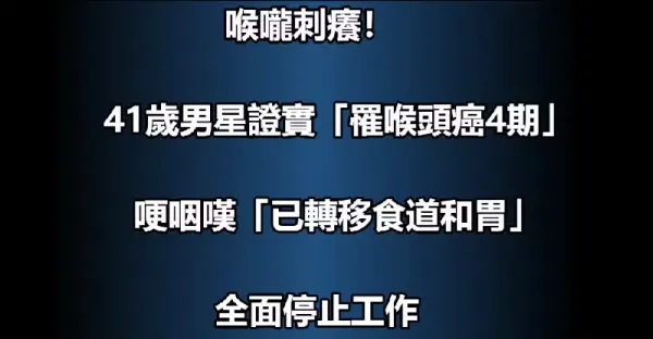 喉嚨刺癢!41歲男星證實「罹喉頭癌4期」 哽咽嘆「已轉移食道和胃」全面停止工作