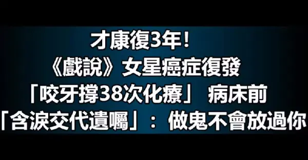 才康復3年!《戲說》女星癌症復發「咬牙撐38次化療」 病床前「含淚交代遺囑」:做鬼不會放過你