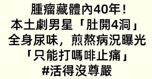 腫瘤藏體內40年!本土劇男星「肚開4洞」全身尿味,煎熬病況曝光「只能打嗎啡止痛」:活得沒尊嚴
