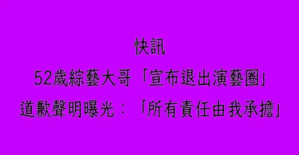 52歲綜藝大哥「宣布退出演藝圈」道歉聲明曝光:「所有責任由我承擔」