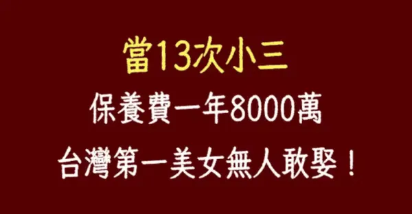 當13次小三,保養費一年8000萬台幣,台灣第一美女無人敢娶!