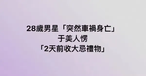 28歲男星「突然車禍身 亡」......于美人愣「2天前收大忌禮物!」