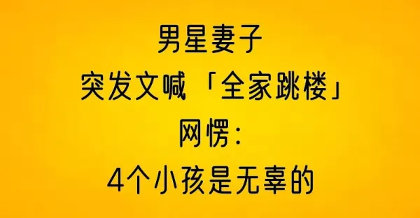 男星妻子突發文喊「全家跳樓」 網愣:4個小孩是無辜的