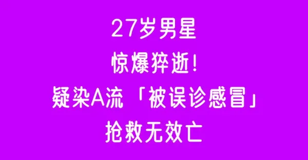 27歲男星驚爆猝逝!疑染A流「被誤診感冒」 搶救無效亡!