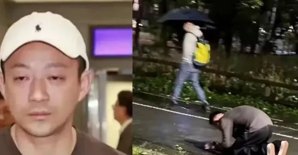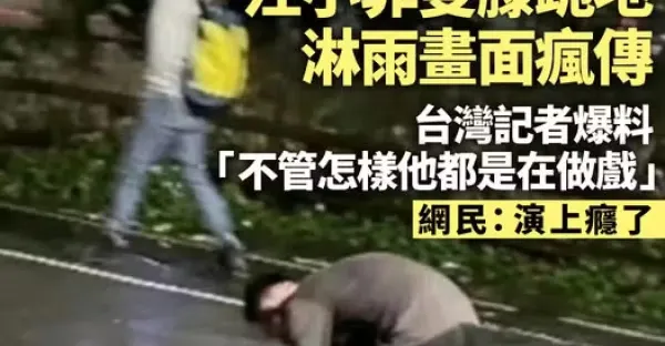 汪小菲雙膝跪地淋雨畫面瘋傳,台記者稱是做戲網批:演上癮了。