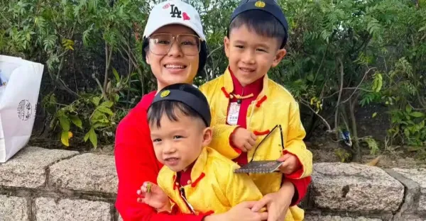 胡杏兒一家五口迎新年,三個兒子穿唐裝帥氣可愛,模樣似複製粘貼