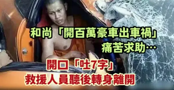 和尚「開百萬豪車出車禍」痛苦求助…開口「吐7字」救援人員聽後轉身離開……