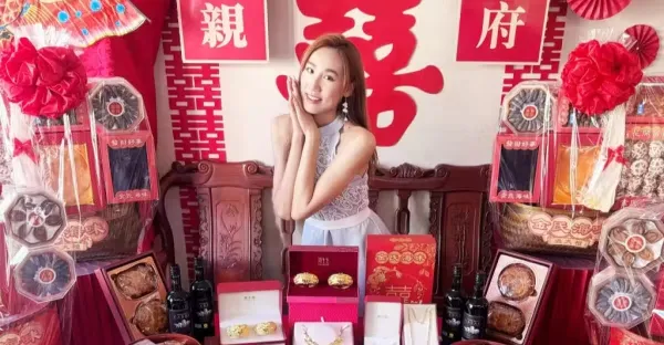 TVB女神宣布下月結婚!傳統過大禮場面震撼,金器海味擺滿三張桌