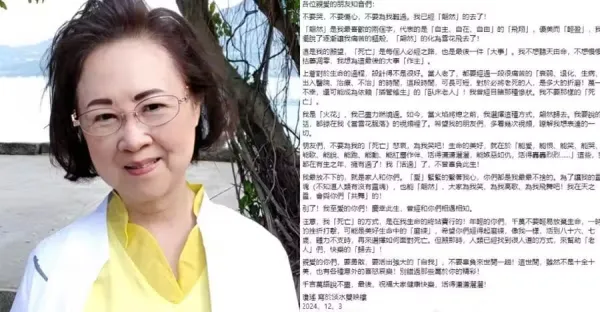 瓊瑤最後聲明曝!臉書留「不要為我難過」:我心翩然自如奔放快樂