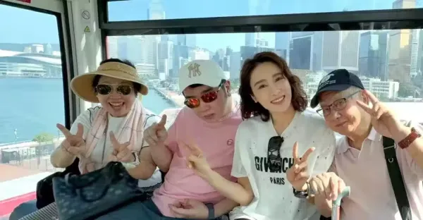 黎姿帶父母及弟弟出遊,一家四口搭摩天輪幸福歡樂,黎嬰狀態不錯