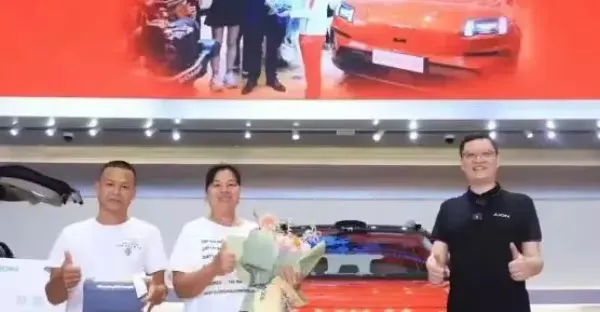 全紅嬋獲贈第二台車,母親穿拖鞋代替全紅嬋出席贈車儀式,,父親臉上樂開了花