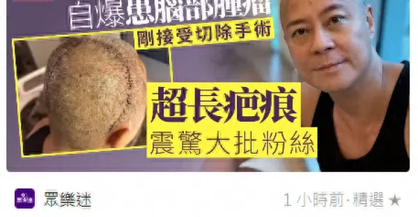 港星蔡一傑罹患腦瘤,做開顱手術傷口近40厘米,成功後發文報平安