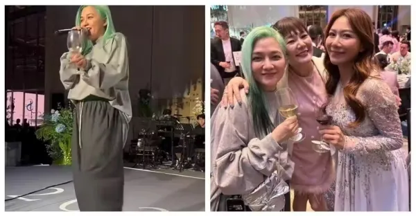 歌迷跪求復出!大咖歌后現身老蕭婚禮「頂一頭綠髮開唱」 全場嗨翻「發福了還是好美」