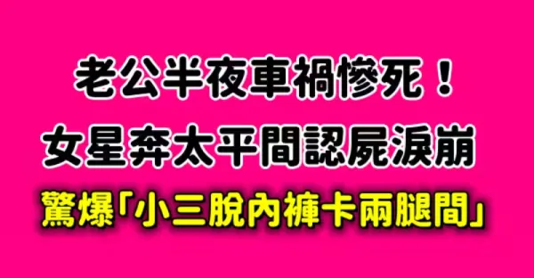 老公半夜車禍慘死!女星奔太平間認屍淚崩 驚爆「小 三褲褲卡兩腿間...」