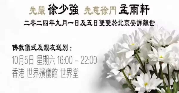 徐少強與小30歲妻子相隔4日離世,5名子女發訃聞喪禮下周香港舉行