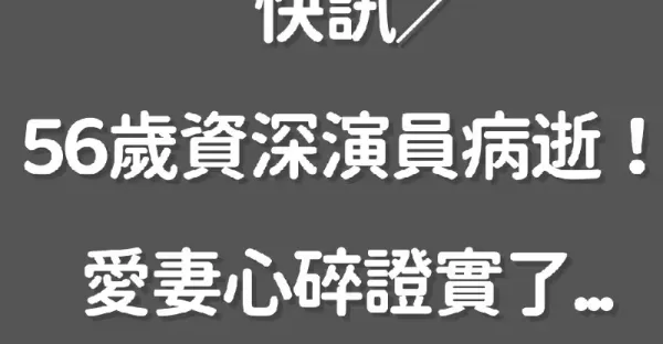 快訊/56歲資深演員病逝! 愛妻心碎證實了...