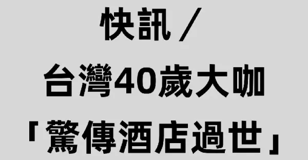 快訊/台灣40歲大咖「驚傳酒店過世」