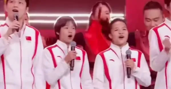 全紅嬋、樊振東共同演唱《大中國》,全妹聲音最大,,全開麥很響亮