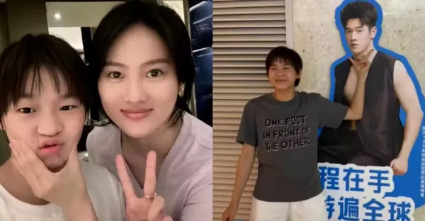 全紅嬋與潘展樂廣告牌合影!模仿陳若琳捏臉動作,逗笑眾人