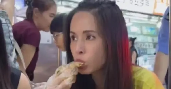 李若彤逛夜市被偶遇,大口吃路邊攤接地氣,網友:姑姑太能吃了!