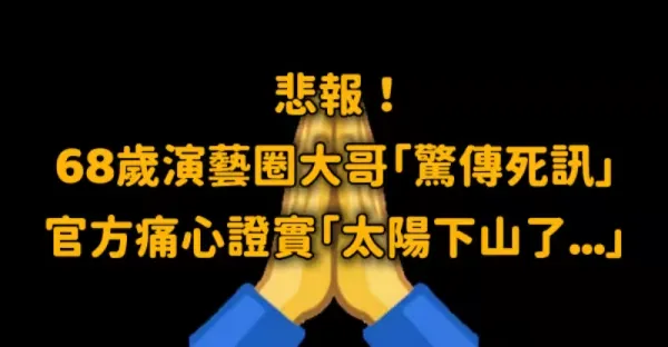 悲報!68歲演藝圈大哥「驚傳死訊」 官方痛心證實「太陽下山了...」