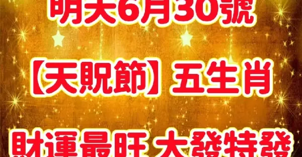 明天6月30號【天貺節】 五生肖 財運最旺 大發特發