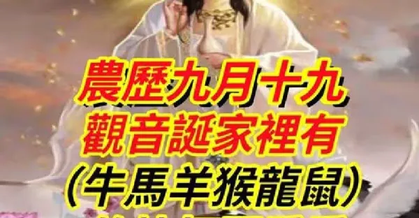 農曆九月十九【觀音誕】家裡有(牛馬羊猴龍鼠)的快打開看看,越快越好