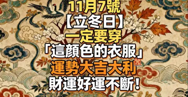11月7號【立冬日】一定要穿「這顏色的衣服」 運勢大吉大利,財運好運不斷!!