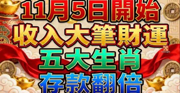 11月5日開始收入大筆財運,五大生肖存款翻倍