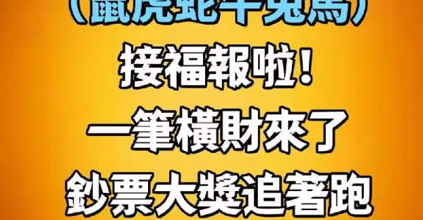 鼠虎蛇牛兔馬接福報:一筆橫財來了,鈔票大獎追著跑!記得提醒家裡人!!
