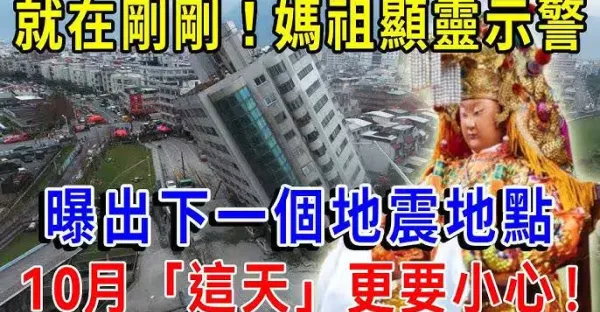 就在剛剛!媽祖顯靈發出緊急通知,下一個「大地震地點」!10月「這天」更要小心