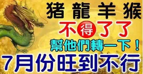 生肖(豬 龍 羊 猴)7月份財運很旺,幫他們轉一下