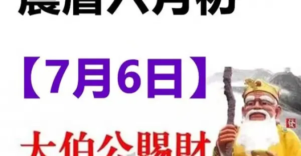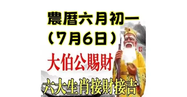 農暦六月初一(7月6日)大伯公賜財,六大生肖接財接吉!