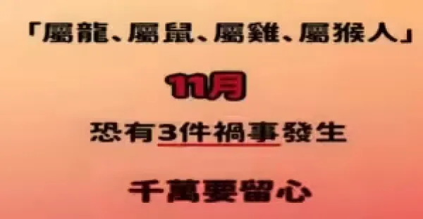 11月警告!!! 屬龍、鼠、雞、猴的人,3大禍事恐降臨,千萬小心