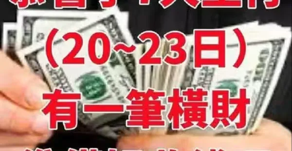 恭喜了7大生肖,在未來三天( 9月20~23日)即將有一筆橫財,準備好收錢吧