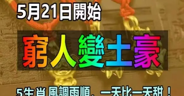 5月21日開始窮人變土豪,5生肖風調雨順,一天比一天甜