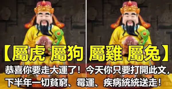 【屬虎 屬狗 屬雞 屬兔】恭喜你要走大運了!今天你只要打開此文,下半年一切的貧窮、霉運、疾病統統送走!