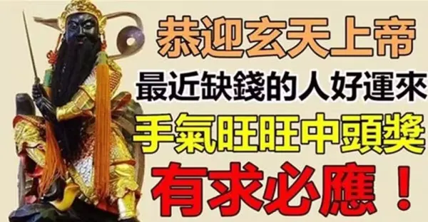 恭迎玄天上帝!最近缺錢的人手氣旺,最近不順的人,天天發!今日念咒語十遍,神仙下凡渡你! !