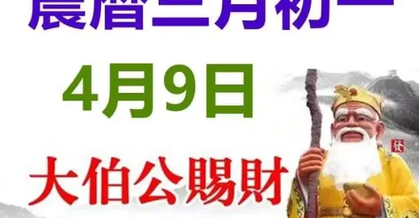 農暦三月初一(4月9日)大伯公賜財,六大生肖接財接吉