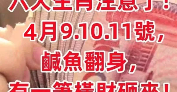 4月9.10.11號鹹魚翻身,有一筆橫財砸來的生肖!