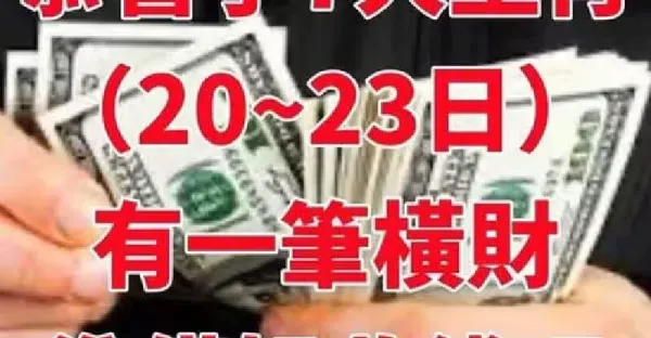 恭喜了7大生肖,在未來三天( 8月20~23日)即將有一筆橫財,準備好收錢吧!