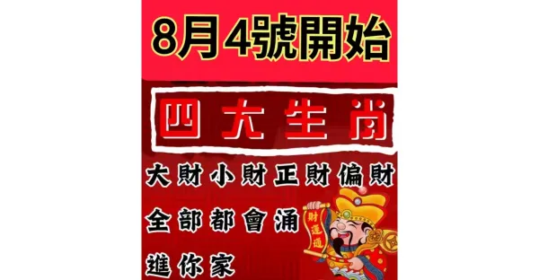 8月4號開始,四大生肖,大財小財正財偏財,全部都會湧進你家