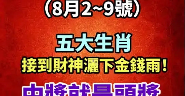 未來七天(8月2~9號)接到財神灑下金錢雨!中獎就是頭獎的生肖!