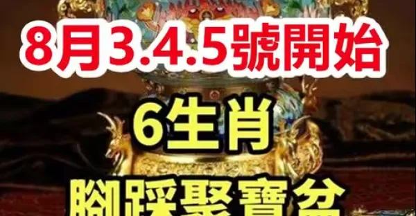 8月3.4.5號開始,腳踩聚寶盆的6生肖,開始走好運