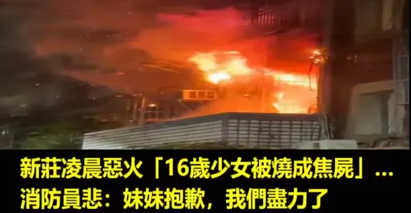 新莊凌晨惡火「16歲少女被燒成焦屍」…消防員悲:妹妹抱歉,我們盡力了