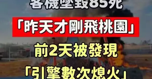 快訊/客機墜毀85死「昨天才剛飛桃園」! 前2天被發現「引擎數次熄火」.