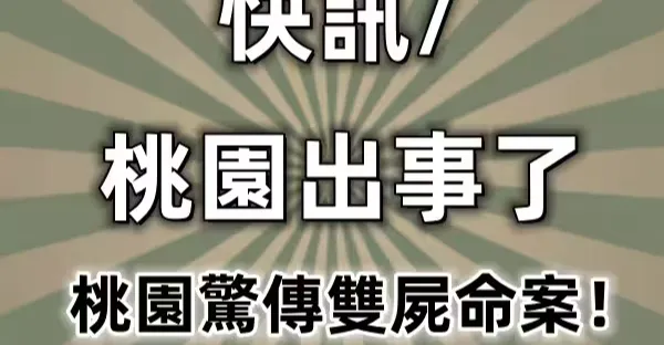 快訊/桃園出事了!!!桃園驚傳雙屍命案!